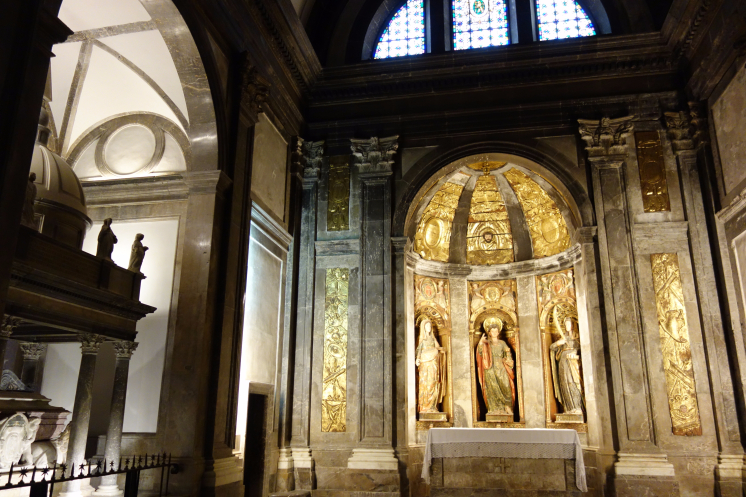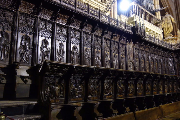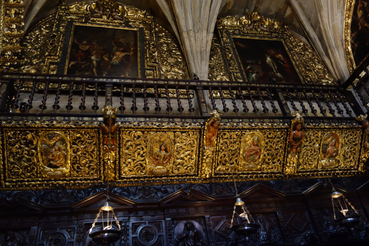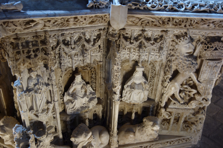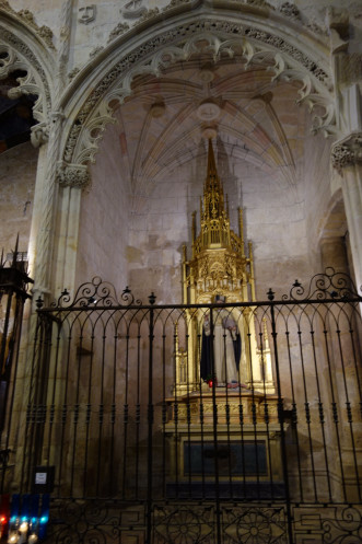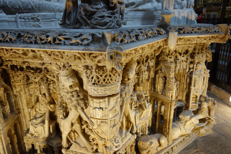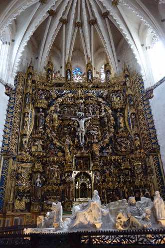 Перед посещением Бургоса заехали в картезианский монастырь Мирафлорес, точнее, в доступную для посещения церковь, где похоронены родители Изабеллы Католической и ее брат. Алебастровые надгробия просто потрясающие. Ну и резной алтарь.