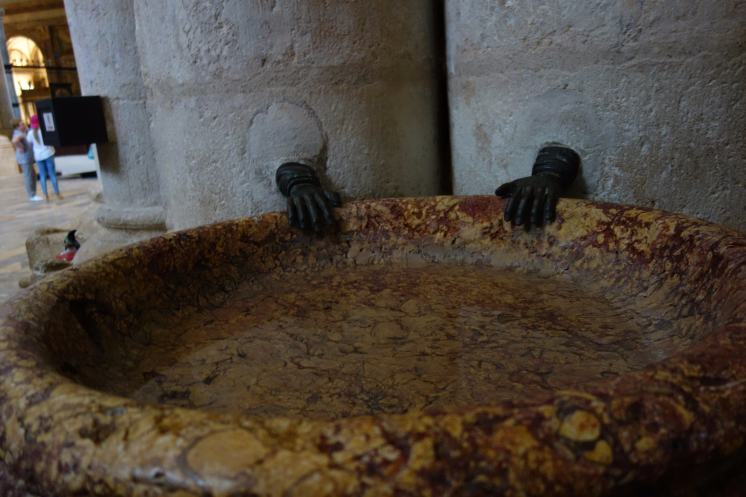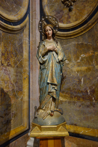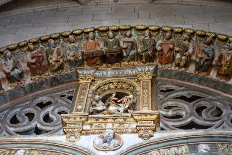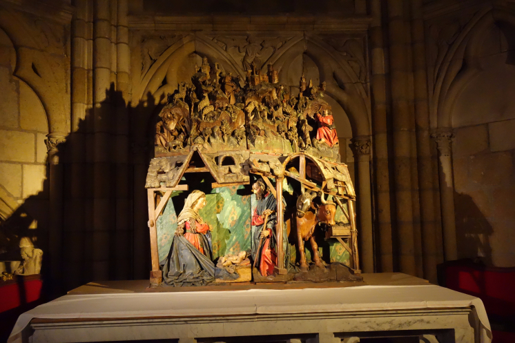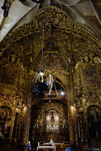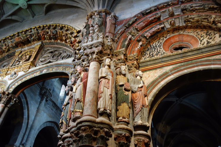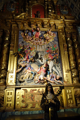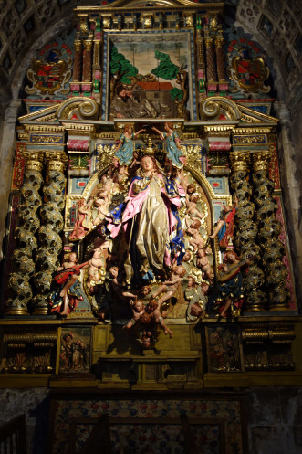 Я же вернулась в собор св.Мартина, в который Николай провел желающих за отдельную плату. Причем кассир продал нам более дешевые билеты, хотя желающих было меньше, чем численность группы, которой полагаются уцененные билеты. И согласился впустить по этим билетам еще раз (на осмотр церкви отвели не очень много времени, потому что часть группы ждала за дверью продолжения экскурсии). А смотреть есть чего: «Райский Портик» не уступает «Портику Славы» сантьягского собора (хотя последний я видела только на картинке), резная запрестольная композиция 16 века, распятие, на котором у Христа натуральные волосы… Как-то раньше резные деревянные фигуры из церквей в музеях не производили на меня особого впечатления, казались грубоватыми и наивными. А вот тут в одной композиции впечатлили. Ну и есть в некоторых храмах особая атмосфера, намоленность, что ли. Так что я сходила в собор еще раз, потом зашла в музей при соборе, в который не успела в первый заход.