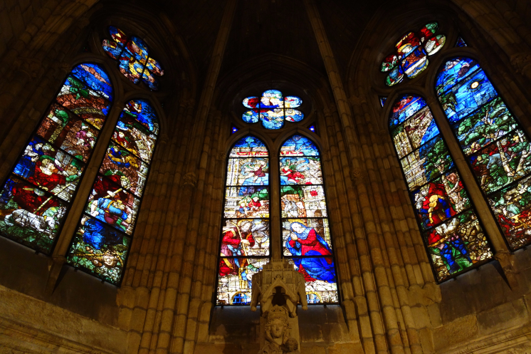 Рядом дворец Гусманов, в котором ныне заседает правительство провинции Леон. Базилика св.Исидора и апофеоз — кафедральный собор Санта Мария де Леон, построенный на фундаменте римских купален. Для меня эталон красоты витражей — Сен-Шапель в Париже, но тут тоже впечатляющее зрелище. Причем все витражи, кроме одной розы, оригинальные — та роза рухнула при реконструкции собора в 19 веке. Жалко, аудиогида на русском языке у них нет.