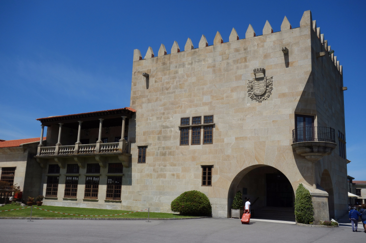 Следующие две ночи мы провели в отеле Talaso Louxo La Toxa 4* на острове Ла Тоха. Отель снаружи не впечатляет совсем, но внутри довольно удобный и даже, пожалуй, роскошный. Только СПА-зона расположена под стеклянным куполом, так что в солнечную погоду сидеть в бурлящей термальной воде тяжко. Стоит это удовольствие 4 евро за час, можно еще посидеть в сауне или хаммаме. И непременно надо быть в тряпичной купальной шапочке (полиэтиленовая для душа не допускается). Шапку можно купить у них, можно надеть свою. Можно взять напрокат резиновые тапки и махровый халат, бесплатно, только расписываешься, сколько заплатишь в случае утери. Николай несколько раз предупредил, что сдать халаты в СПА-центр надо вечером накануне отъезда, но когда во время ужина перед этим отъездом он спросил на всякий случай, все ли сдали халаты и расплатились за СПА, нашлась дамочка, удивленно спросившая: «А что, их надо было сдавать?» Хорошо, что до закрытия СПА-центра оставалось минут 10, а то бы утром потеряли кучу времени из-за нее: СПА открывали позднее нашего планового отъезда.