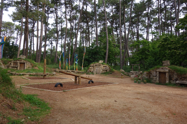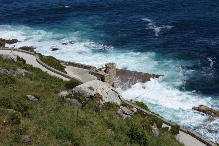 На следующий день за отдельную плату желающих завезли на гору св.Теклы — там площадка с хорошим обзором, вид на реку Миньо в месте, где она впадает в океан. Ну и Португалия на том берегу. На полпути к вершине сохранились остатки кельтского поселка с двумя реконструированными хибарками.