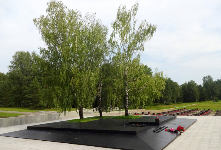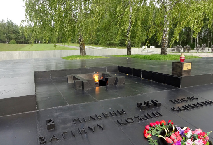 Березы и Вечный огонь образуют квадрат. В трех углах этого квадрата - живые деревья, а в четвертом - огонь, который напоминает нам о том, что каждый четвертый житель Белоруссии погиб в той страшной войне.