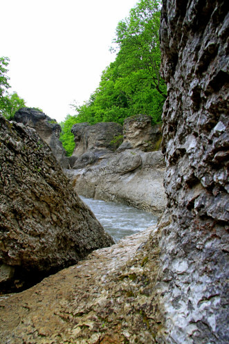 В конце маршрута река становится шире, скалы – ниже, а камни приобретают более причудливые очертания.