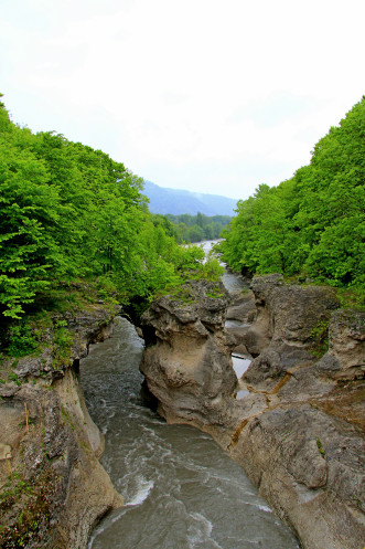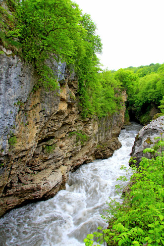 Выехав утром из Теберды, мы подъехали к Хаджохской теснине ближе к 3м часам дня. Припарковали машину у входа и пошли к кассам. Стоит отметить необоснованно высокую цену за билет. Билеты для взрослых стоили 400 руб.