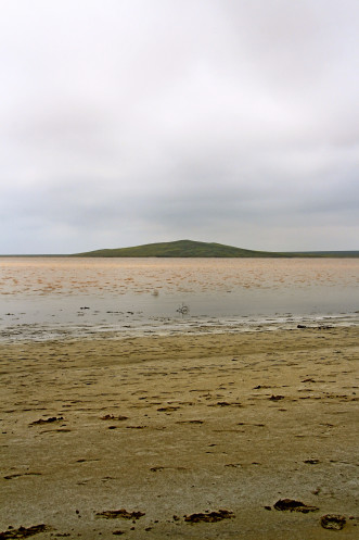 На берегу озера оставили свои следы множество зверей и птиц, а от воды на земле оставался белый соляной осадок.