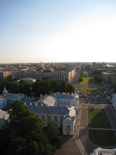 Прекрасные виды открываются со звонницы великолепного Смольного собора.