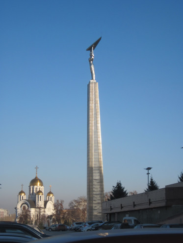 архитектурный памятник. Слева от него проспект Мира – с Романовским музеем и театром им. Островского.