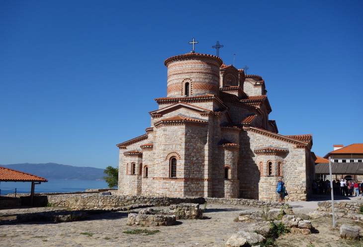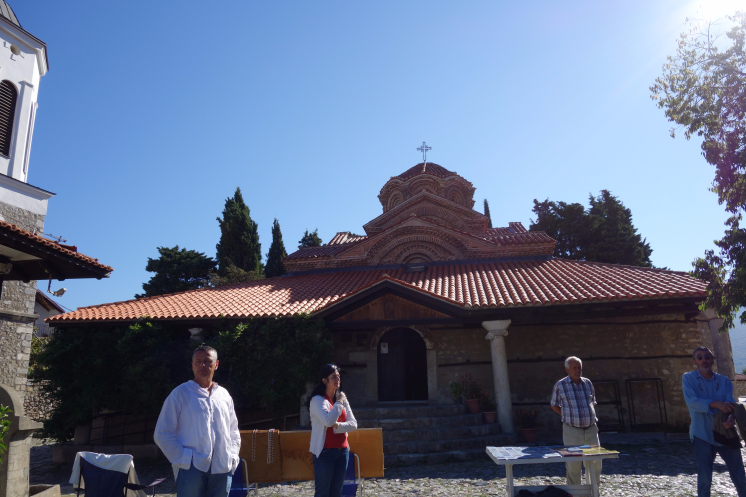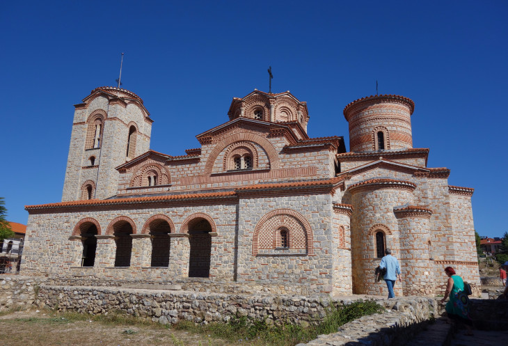 Жалко, что там нельзя снимать внутри: очень красивый резной иконостас. Прямо напротив монастыря на противоположном склоне ущелья — поселок с мечетью аж на 4 минарета. В Охриде тоже мечетей достаточно. Местный гид рассказывал, что он потомок «тех самых нехороших турок», но они прекрасно уживаются с православными. Православных старинных церквей тоже немало, только внутри снимать не разрешают. Активно ведутся раскопки и восстановление древнего Плаошника — Охридской книжной школы, где велось обучение с использованием нового алфавита (кириллицы). Храм св.Пантелеймона по образцу древнего храма св.Климента восстановлен, теперь хотят на этом месте возродить и учебный центр.
