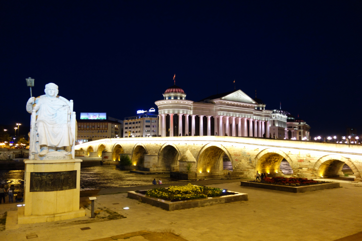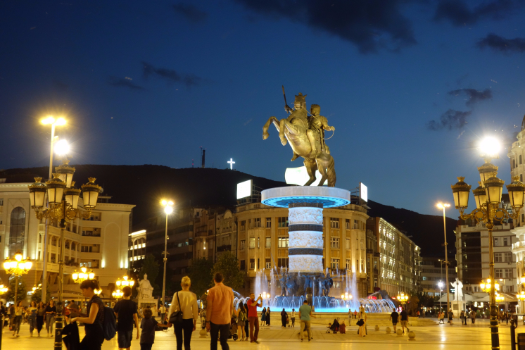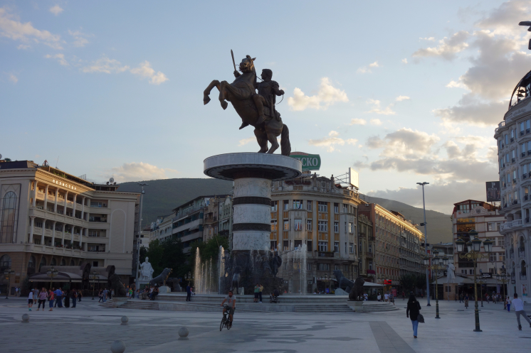 Дальше наш путь лежал в Македонию. Первое, что бросается в глаза в столице — гигантские статуи-фонтаны в центре города, проект Скопье 2014. Церетели отдыхает. На набережной в Салониках статуя Александра Македонского, на которого греки имеют гораздо больше прав (его родина Пелла – в Греции) — просто карлик по сравнению с «Воином на коне», как его политкорректно назвали после протеста Греции.