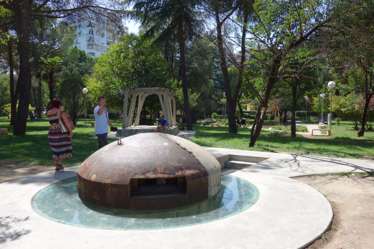 А вот дальше была Албания. Услышав в передаче, что страна официально мусульманская, ожидала, что женщины поголовно будут в хиджабах. Но нет, никого. Только пару девушек в Тиране видела, и то в розовом и сиреневом. Оказывается, Энвер Ходжа надолго отбил желание проявлять религиозность, независимо от конфессии. В «первом в мире атеистическом государстве» за крещение ребенка могли расстрелять, как священника Штьефена Курти. Ну и «церкви сравняли с землей», в отличие от тюрем. Начиная от границы, стали попадаться бункеры. Они там везде, в том числе и в центре города. Нас повели на экскурсию в музей, устроенный в бомбоубежище.