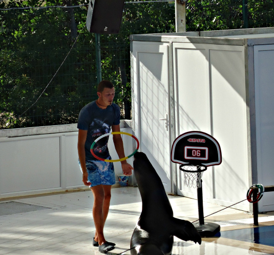 Апофеозом всей экскурсии стало шоу морских котиков, которое проходило в небольшом мини-дельфинарии. Хорошо, что мы расположились под крытым навесом, а то бы 30- минутное шоу было бы всем нам не в радость! Надо отметить, что и дрессировщик, и "артисты" - морские котики - работали отменно, доставив удовольствие не только многочисленным детишкам, но и взрослым.