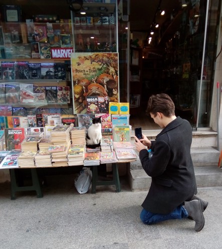 Далее была неспешная прогулка по набережной, стали свидетелями как молодежь танцевала под народную музыку, понаблюдали за рыбаками и даже видели в воде у пристани морскую звезду. Это было столь неожиданно, что я долго не мог определить это существо, даже не предполагая такого. Значит вода в Босфоре не такая уж плохая как об этом пишут. Потом посидели на камнях с видом на Мраморное море, предаваясь философским размышлениям о бренности бытия, к чему виды и обстановка располагали чрезвычайно. Данил позанимался уже привычным в Стамбуле для себя делом – пофотал кошечек, гревшихся на камнях. Как я потом узнал, они там обитают круглогодично и являются такой же неотъемлемой частью прибрежного пейзажа, как и чайки.