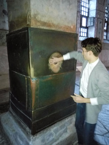 Пока я делился с сыном известными мне фактами из истории этого базара мы по неотполированным для туристов узким улочкам спустились к Султанахмет. Цистерну Базилика – крупнейшее и наиболее сохранившееся древнее водохранилище Константинополя - решили оставить на следующий визит, а потому решительно прошли мимо и направились к Айа-Софии. Мы остановились на площади перед собором.