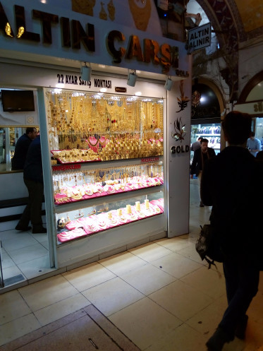 Пару раз спросив местных прохожих для надежности мы его быстро нашли. Прошлись по нескольким ближайшим улочкам, пофотографировали друг друга на фоне разномастных лавочек и поспешили покинуть этот омут для туристов с деньгами. Бывав там раньше, я знал, что, имея средства и желание что-либо прикупить можно провести целый день блуждая по 66-ти улочкам этого древнейшего базара. Там разбегаются глаза и продавцы каждого из 4000 расположенных под его крышей магазинчиков со всей своей восточной страстью мечтают завлечь вас к себе. Сегодня на этом базаре, строительство которого началось еще при Мехмеде II сразу после завоевания Константинополя, продают керамику, ковры, антиквариат, кожу, текстиль и конечно ювелирные изделия. А раньше на его территории работала биржа, серьезные купцы проводили различные финансовые и торговые операции, а до середины 19-го века это еще был и центр работорговли!