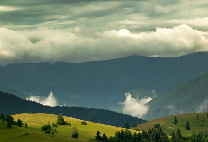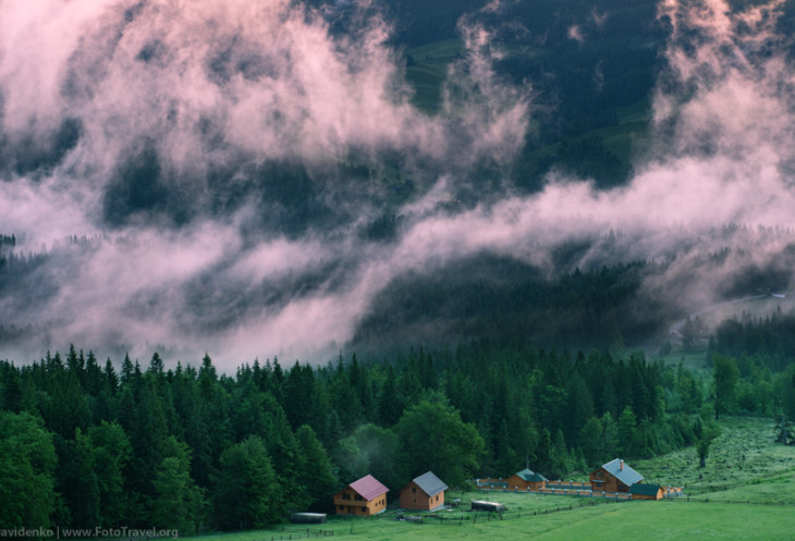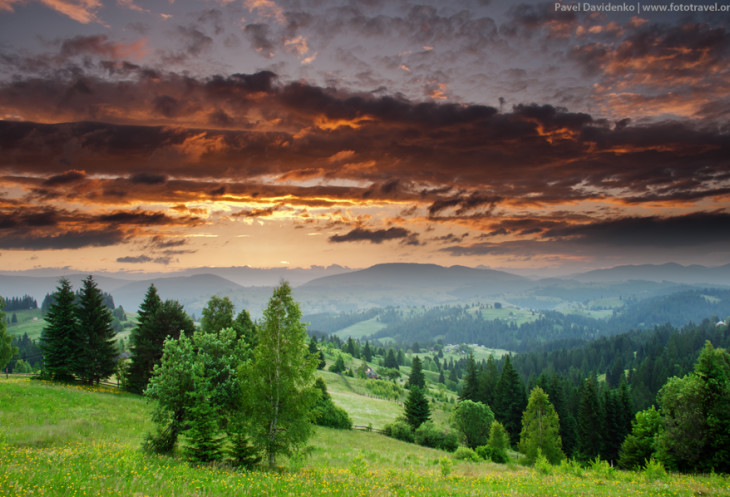 В этот день у нас был переезд на другую точку съемки. В село Яблуницу. По дороге в Яблуницу мы остановились в Ворохте, купили мороженое и пельмени на обед. Проехав десяток с небольшим километров, мы увидели у дороги красивое оборудованное место для отдыха. Там и пообедали. Вовремя прибыли на Яблуницкий перевал. Погода была переменчивая, но закат должен был удаться. Мы поднялись на выбранную точку съемки, и небо должно было вот-вот вспыхнуть алыми красками. Но, увы, буквально за десять минут, нашла плотная облачность, полностью скрывшая солнце. Ничего не оставалось, кроме как отправиться на место ночевки и надеяться на рассвет.