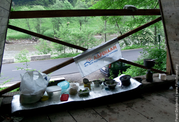 Переждали ураган в палатках, высушили наши тенты, собрали вещи и поехали дальше. Заехали в Межигорье. Пополнили запасы продуктов. Пообедали в харчевне у лыжного подъемника. Продолжили движение в сторону Пилипца и водопада Шипот.