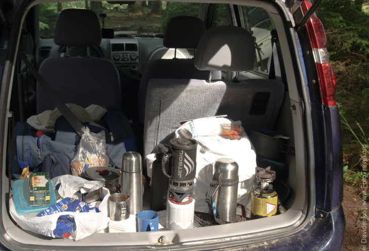 От места, где мы разбили лагерь, до водопада было еще около 8 км пешего хода. Мы разделились, чтобы не оставлять на полдня лагерь без присмотра. Часть участников пошла к Воеводину в этот же день, и часть – на следующий. Так как я был сегодня за рулем, мне выпало остаться в лагере.