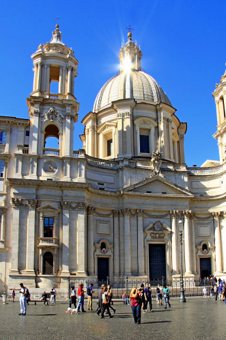 Античным зданиям в монументальности не уступают сооружения более поздней постройки. Но если в первых присутствует некая грузность и приземистость, то в творениях барокко чувствуется легкость и полетность, не смотря на громадные размеры (по аналогии с Дуомо во Флоренции).