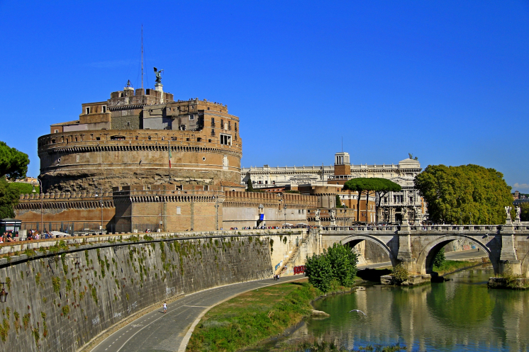 мост и замок Святого ангела с многочисленными скульптурами на перилах