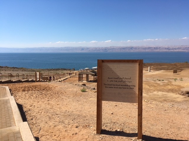По дороге увидели таблички, где находилось море еще в 2000 году, в 2005 и в 2010… Очень жаль, что скоро не будет это чуда света. Каждый год отметка уровня моря уходит больше чем на один метр. Море уходит, пересыхает и это заметно все больше больше. Сюда приезжают люди со всего мира, испытать чудесную силу исцеления .Из за такого уникального расположения, человеку здесь очень комфортно, и как бы не было жарко, мазать кожу разными кремами от солнца нет необходимости, сгореть здесь невозможно.
