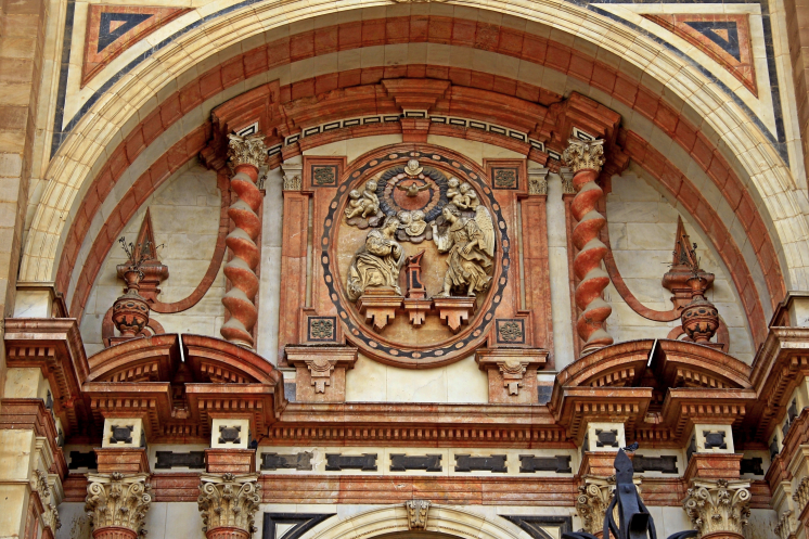 Коричневые стены собора скорее наталкивают на мысли о крепости, но резные украшения в форме фигур святых лишь подтверждают религиозную принадлежность здания. Как и многие испанские храмы, кафедральный собор Малаги построен на месте бывшей мечети, предшественником которой был раннехристианский храм.