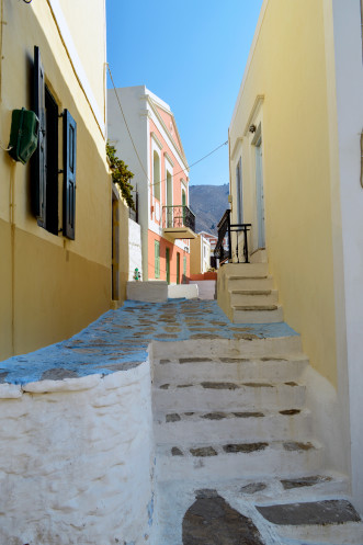 А мы не спеша спустились на самый низ,к подножию лестниц. И на углу улочки обнаружили вот такое скопление водяных счетчиков)). Кстати ,на Сими нет источников питьевой воды,воду привозят с Родоса.Это ,конечно же,сказывается на ценах.