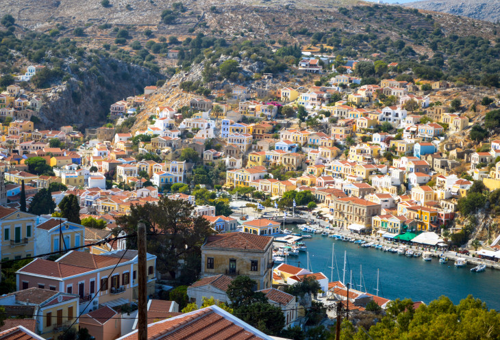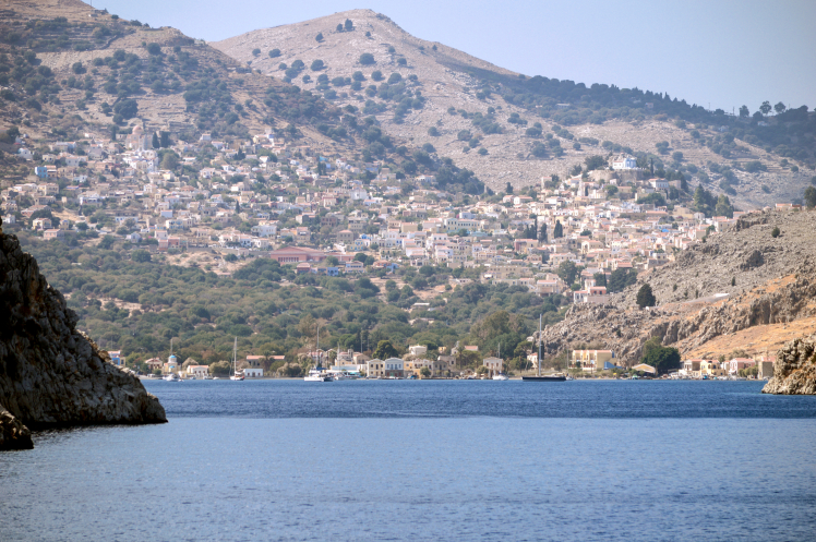 Остров Сими и островом то можно назвать с натяжкой)) Он такой крошечный,что иначе,как островок или даже островочек его и не назовешь)) Размер этого клочка суши всего 11,5 на 9 км.Берега изрезаны глубокими бухтами с маленькими пляжиками,а поверхность -сплошные горы и скалы,самая высокая из которых 616 метров над уровнем моря.Относится Сими к Додеканесскому архипелагу.