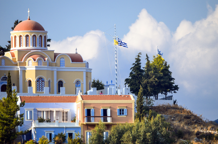 На Сими очень много церквей.Но самый главный храм это монастырь Архангела Михаила ,расположенный в бухте Панормитис, в южной части острова. Туда то наш паром и направляется.В монастыре мы сможем находится около часа,а потом поплывем дальше.