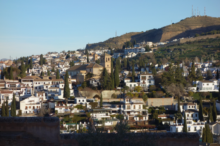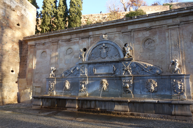 В Гранаде мы тоже тогда были, но нас поселили рядом с Альгамброй, а в город после ужина мы не пошли. В это раз Альгамбру мы обошли снаружи, но зато немного посмотрели город. Сначала вечером при свете новогодней иллюминации, потом утром (не худа без добра, пока «чинили» автобус). В Гранаде было довольно холодно (горы рядом), но снега не было. В одном парке видели пластиковую горку для катания на ватрушках, похоже, платную. Сначала пожалела местных детей, а потом подумала, что наши, кроме снега, мало что видят. В Гранаде попробовала рекомендованный еще Николаем в майской поездке карахильо: кофе с коньяком или бейлисом. В мае не хотелось, а довольно морозным январским утром вполне себе напиток (я взяла с коньяком и сахар сыпать не стала).