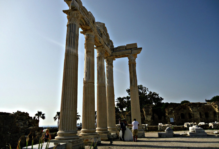 Храм Аполлона называют самым романтичным и самым фотографируемым памятником Турции. По легенде (которую, скорее всего, придумали местные экскурсоводы!) он был построен по приказу военачальника Антония в честь египетской красавицы Клеопатры. Ох и фантазёры эти турки! :-)