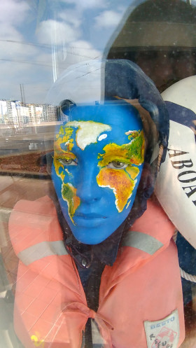 Из настоящих кораблей видела только вот этот. Интересно, зачем в окнах блескучие ленты?