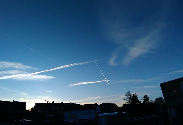 Небо покрыто сеткой следов от самолетов. Над Билефельдом такого, кстати, нет.