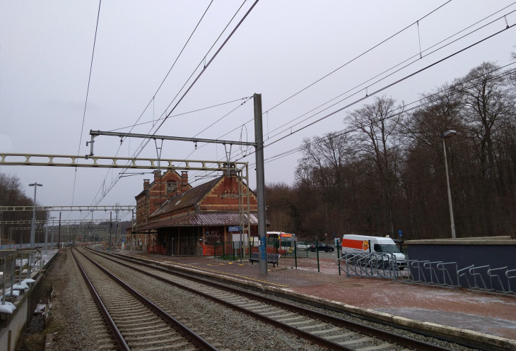 Скоро дедлайны разнообразных магистратур. Поэтому я активизировалась в этом плане и скаталась на день открытых дверей в Vrij Universiteit Brussel. Учиться я там не буду (дорого, нет хорошо подходящих программ). Но это была впечатляющая поездка. Оказывается, в десяти километрах на юг от Брюсселя начинаются холмы и диковатые деревни Валлонии. Вот это - вокзал Гронендала.