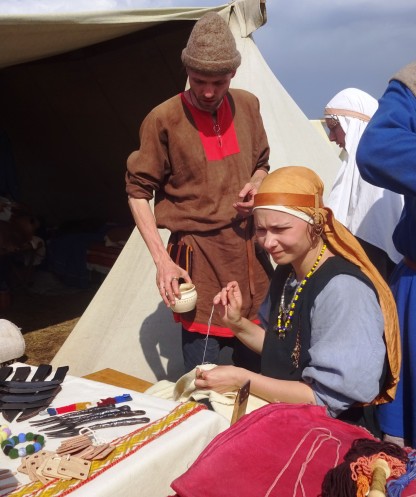 Очень много металлических украшений. Все сделано руками реконструкторов (как они сами утверждают)
