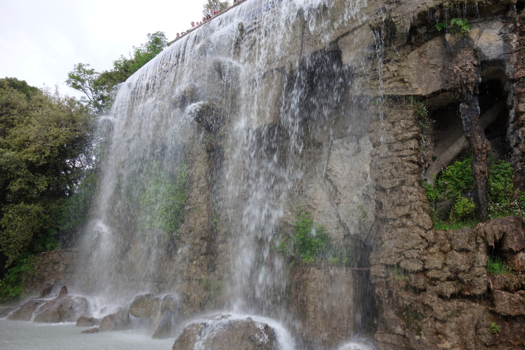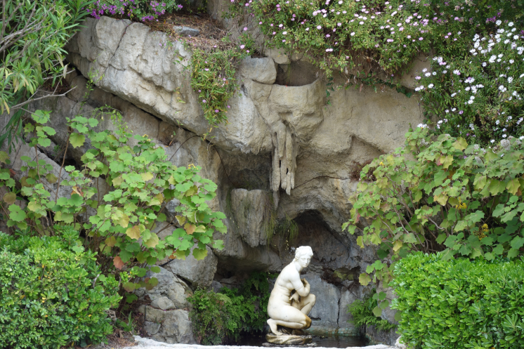 В этот раз нас поселили недалеко от площади Гарибальди, так что и могилу Герцена я посетила, и каскад. Мне повезло, а приятельница сфотографировала каскад с третьего раза: воду дают по какому-то непонятному графику. Поднимались мы на холм пешком — стоять в очереди на бесплатный лифт не хотелось. Вид на море оттуда замечательный, вода действительно лазурная. Ближе к Замковому холму на пляже даже не галька, а крупные булыжники. Я немного позагорала: компаньонка моя, полежав полчасика, сбежала. Ну у меня бока помягче, я и на каменюках могу лежать. Желающих искупаться немного, но есть. Мы зашли по колено, но денек был ветреный, неодолимого желания окунуться, как на Палеокастрице в прошлом году, не было.