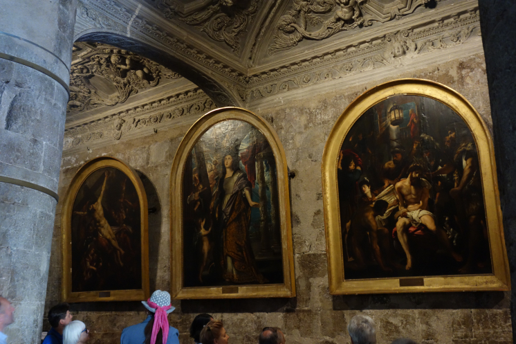 В Грассе я раньше тоже была, но тогда знакомство с городом ограничивалось посещением фабрики духов Фрагонар. А в этот раз Зинаида провела нас по старинным улочкам, показала ратушу и собор, в котором, предствавьте, три полотна Рубенса. Собор пострадал от взрыва в наполеоновские времена, все колонны в выбоинах, но устоял. Когда мы подходили к собору, на площади у памятника воинам заканчивались торжества (8 мая). К сожалению, не успела сфотографировать пару очень пожилых людей в национальных костюмах. Но без фабрики, конечно, не обошлось.