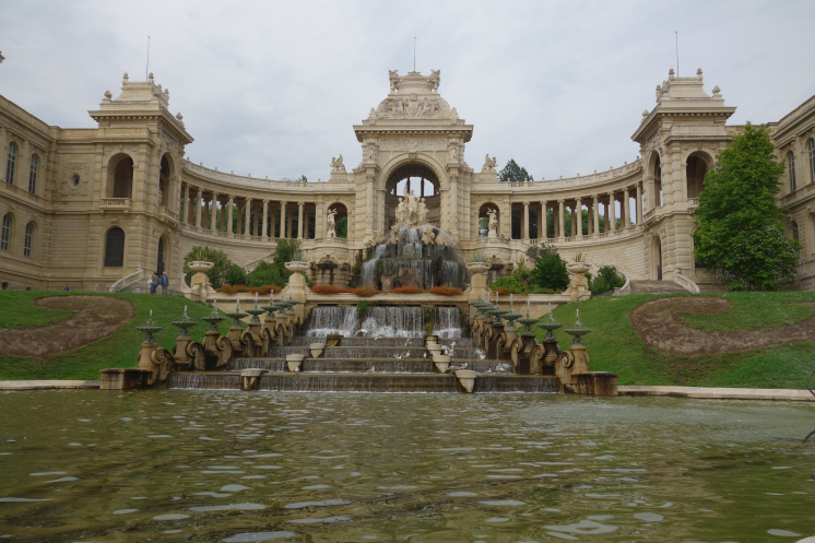 Дальше наш путь лежал в Марсель. И вот тут, наконец, сбылась моя мечта (с 4-го раза): я увидела-таки Дворец воды Лоншам — его буквально на днях закончили реконструировать, только цветочки еще не успели посадить. Я где-то прочитала, что в18-00 парк закрывается, и очень боялась, что мы не успеем, но напрасно, потому что парк не закрыли. Грандиозное зрелище!