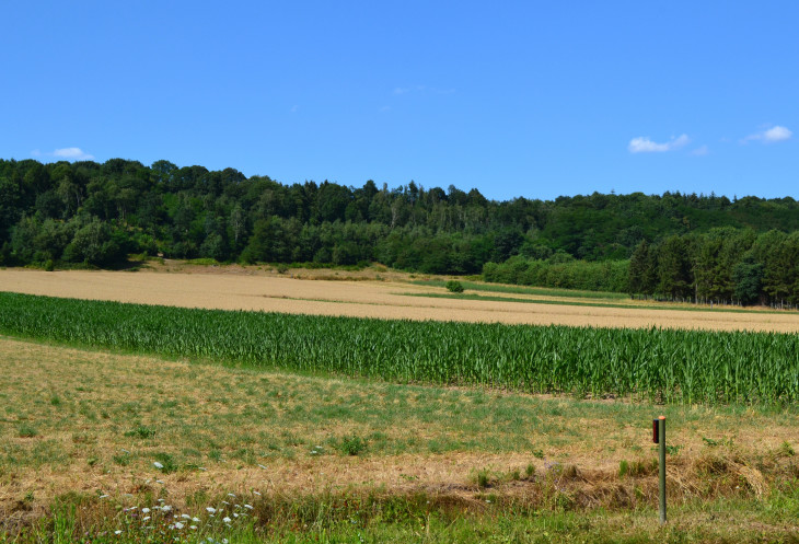 Часть - между полей зреющей кукурузы и пожелтевшей пшеницы.
