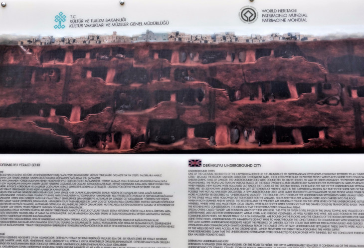 Город производит сильное впечатление! Подземный город Деринкую — это вырубленные в мягком туфе пещеры, которые соединяют подземные помещения, предназначенные для различных целей. Город очень большой, в нём 8 этажей, уходящих в глубину примерно на 60 метров (до грунтовых вод). Считают, что в нем могло жить около 20 тысяч человек, к тому же под землей держали еще скот и провизию.