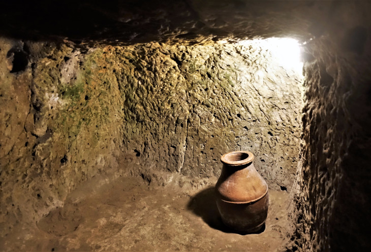 Подземный город имеет гениальное устройство. Удивительно, как это могли сделать люди в то время. Чего только стоят вентиляционные шахты и колодцы с водой. Но больше всего впечатляет архитектура ходов, которая предназначена погубить нежданного гостя (некоторые ходы внезапно заканчиваются обрывом в пропасть), тогда как сами жители хорошо там ориентировались. В городе есть разнообразные помещения: винодельни, жилые комнаты, храмы, конюшни, кухни, места для собраний, школы, винные погреба, часовни, пекарни, столовые, помещения, где отжимали масла, различные мастерские, оружейные склады. Есть даже подземное кладбище. Фотографировала немного, тк помещения очень похожи одно на другое и совершенно непонятно, как там можно не заблудиться…