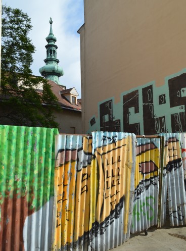 На одном из зданий замечаем гигантское граффити, сделанное на Bratislava Street Art 2016 - дремлющий лис.