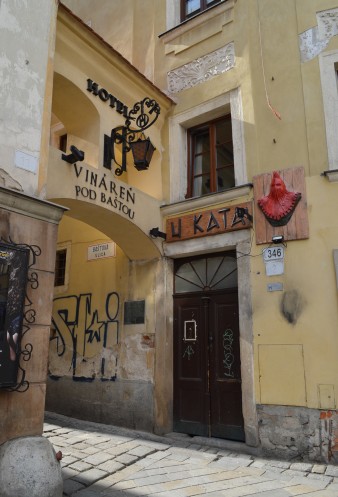 Ночуем в Penzión U Škorpióna, 43 евро за два двухместных номера. Обычная малогабаритная гостиница, душ и туалет общие, бар на первом этаже.