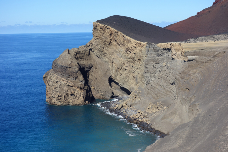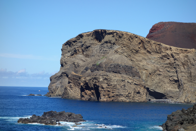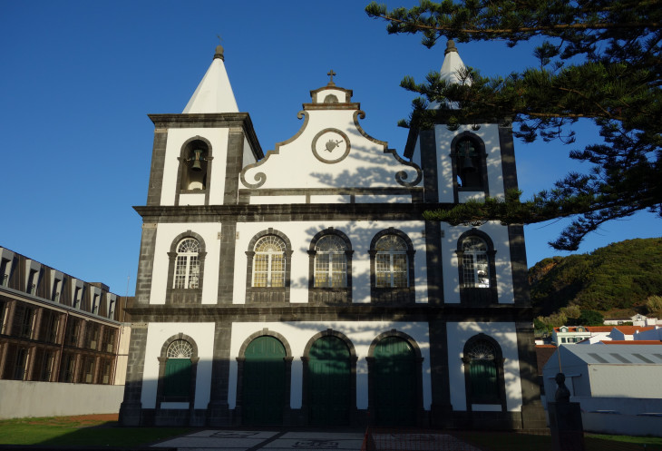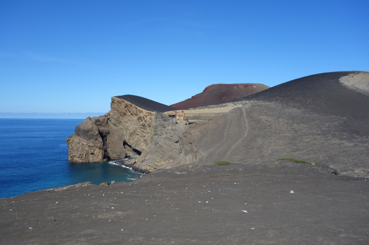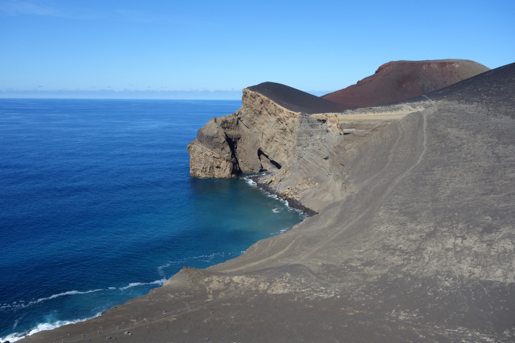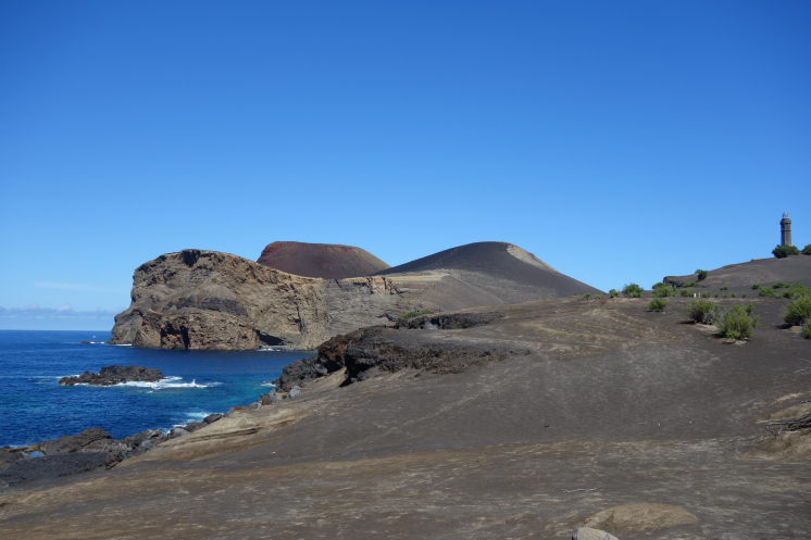 И вот мы приземлились на Файале. Первый приятный момент: группа 11 человек, большой автобус. Сразу поехали смотреть на «самую молодую землю Европы»: в 1957 году у берега острова начал извергаться подводный вулкан Капелиньюш. Раньше остров заканчивался там, где стоит маяк, а рядом был поселок и порт. Но в результате серии извержений поселок засыпало выше крыш, маяк до уровня второго этажа, а остров существенно увеличил свою площадь. Впрочем, ветер и волны постепенно уменьшают эту добавочную площадь. Хорошо, что извержение длилось несколько месяцев и все эвакуировались. Нам повезло: была безветренная погода, потому вход в исследовательский центр вулканической деятельности не был засыпан пеплом (в ветреные дни доступа в центр нет). Не то, чтобы это было незабываемо интересно, но мы поднялись на башню бывшего маяка, откуда открывался замечательный вид на окрестности, в том числе и на «самую молодую землю». Хотя 10 евро посещение этого центра явно не стоит.