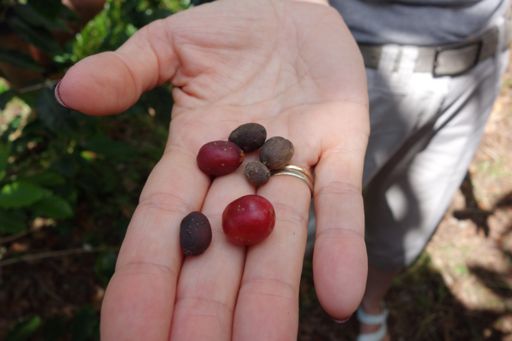 До кофейной плантации мы тоже добрались, попутно попробовав виноград «с куста» и еще какие-то фруктики, названия которых я и не слышала. Маракуйя еще не созрела, но плоды рядом с цветами висели довольно большие. Тех, кто бывал в Юго-Восточной Азии, вряд ли впечатлила бы эта небольшая плантация, но мне было интересно. Еще хозяйка дома и ее сестра занимаются ткачеством традиционных шерстяных ковров и ковриков на допотопных станках, а в кафе подают выращенный кофе. Вкус своеобразный, купила как сувенир пакетик зерен (100 г — 10 евро).
