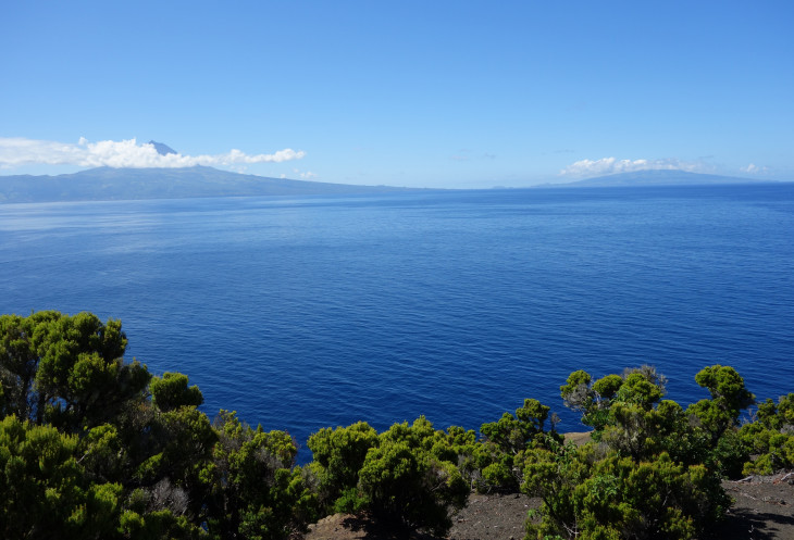 Вот на Сан-Жоржи как-то сразу все пошло некомфортно: Лариса предупредила, что номера к нашему прибытию еще не будут, скорее всего, готовы. Но что она не даст времени переодеться и намазаться «антипригарным покрытием», она не сказала. Желающие могли остаться у природного бассейна, но половина все-таки пошла в запланированный подъем на ближайший вулканический конус Ponta das Eiras (161 метр над уровнем моря). Я тоже пошла: убедиться, что я еще не совсем старая развалина, да и виды нам обещали необыкновенные. Действительно, с крайней точки этой продолговатой возвышенности видно сразу два острова: Пику и Файал, но усилия превзошли результат: было самое пекло, да я еще находилась в раздражении из-за спешности вытаскивания кроссовок из чемодана посреди холла гостиницы. Впрочем, я шла не последняя, а пара человек из нашей небольшой группы вернулась с полпути.