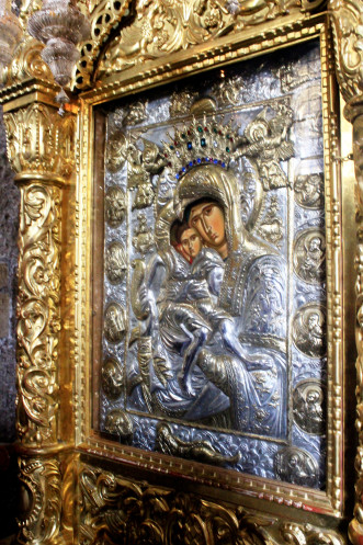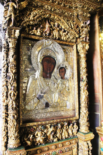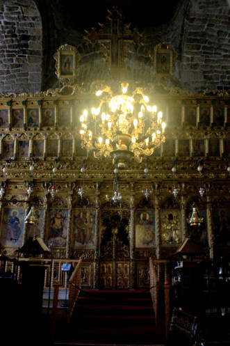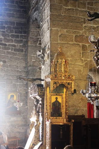 Церковь горела, потому внутри сплошной обожженный камень, от которого так и веет «стариной глубокой». И при этом роскошь позолоченного барокко – иконостас просто «бьет под дых», и какое-то время не до остальных деталей, к числу которых относятся и старинные образы Девы Марии, и, собственно, мощи Св. Лазаря и… Саркофаг тоже можно рассмотреть, кстати, но к нему надо спуститься.