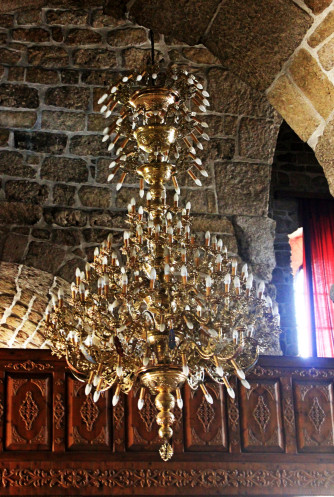 В деталях ламп и лампад очень много лефкаритики, она завораживает своим кружевом. Барочная вязь и позолота отделки… Хочется ходить и все трогать руками. Или подойти и рассматривать. Но времени у нас не слишком много – посещение в составе экскурсии, ещё предстоит ехать дальше, так что, к сожалению, приходится уходить. Выходим с другой стороны, и храм поражает видом и с северной стороны… Моежт быть, в большей степени даже тем, что тут практически не видно переделок, «чистый» 9 век…