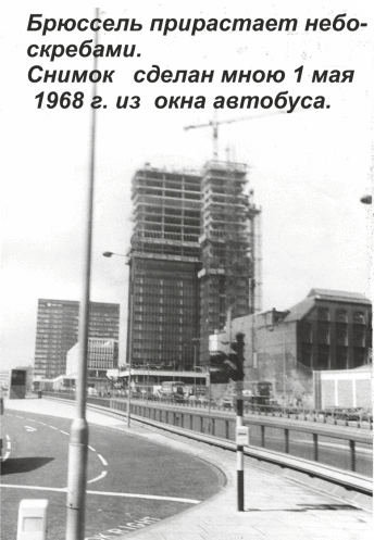 В тот год Брюссель был весь перекопан, строилась всеевропейская автомагистраль, которая должна была соединить Амстердам-Брюссель-Париж. С 1958 г. в Брюсселе обосновалась штаб-квартира общего рынка, а в 1967 г. из Парижа в Брюссель перебралась и штаб-квартира НАТО (Франция, возглавляемая генералом Де Голлем, вышла из НАТО, и руководящие органы НАТО вынуждены были покинуть Париж). Именно в те годы Брюссель стал играть большую роль в европейской политике. В 1951 году Бельгия, Западная Германия, Франция, Италия, Нидерланды и Люксембург подписали в Париже договор о создании Европейского объединения угля и стали, из которого в 1957 году было образовано Европейское экономическое сообщество («Общий рынок»). В противовес ему в 1960 году Великобритания создаст Европейскую ассоциацию свободной торговли (ЕАСТ) с участием 7 стран. Однако соперничество этих двух организаций для Великобритании окажется не в ее пользу, и в 1973 году вместе с Данией и Ирландией она вольется в Общий рынок, а вслед за этими странами в Общий рынок войдут Греция, Испания, Португалия. В результате в 1992 году в Маастрихте (Нидерланды) все эти страны подпишут Договор о создании Европейского союза.