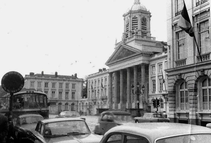На снимке площади, слева, частично видно здание Собора Антверпенской богоматери. В те далекие дни было разрешено движение автотранспорта по главной площади, и экскурсионные автобусы стояли рядом с фонтаном (в левом нижнем углу снимка). Снимки автора 30 апреля 1968 г.