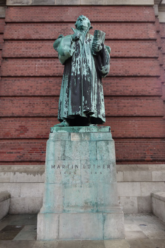 Первое, что я увидела, выйдя на остановке Санкт-Паули — огромную статую Бисмарка в старом Эльбском парке. Хотя, если бы листвы было побольше, возможно, я бы его и не заметила, несмотря на огромные размеры и то, что он расположен на холме. Вблизи памятник оказался еще больше, чем смотрелся издали, но сильно пострадавшим от вандализма: весь постамент исчиркали надписями, а когда памятник огородили забором из ДСП, забор тоже разрисовали. Конечно, у Гамбурга с Бисмарком отношения были непростые, но с тех пор больше ста лет прошло.